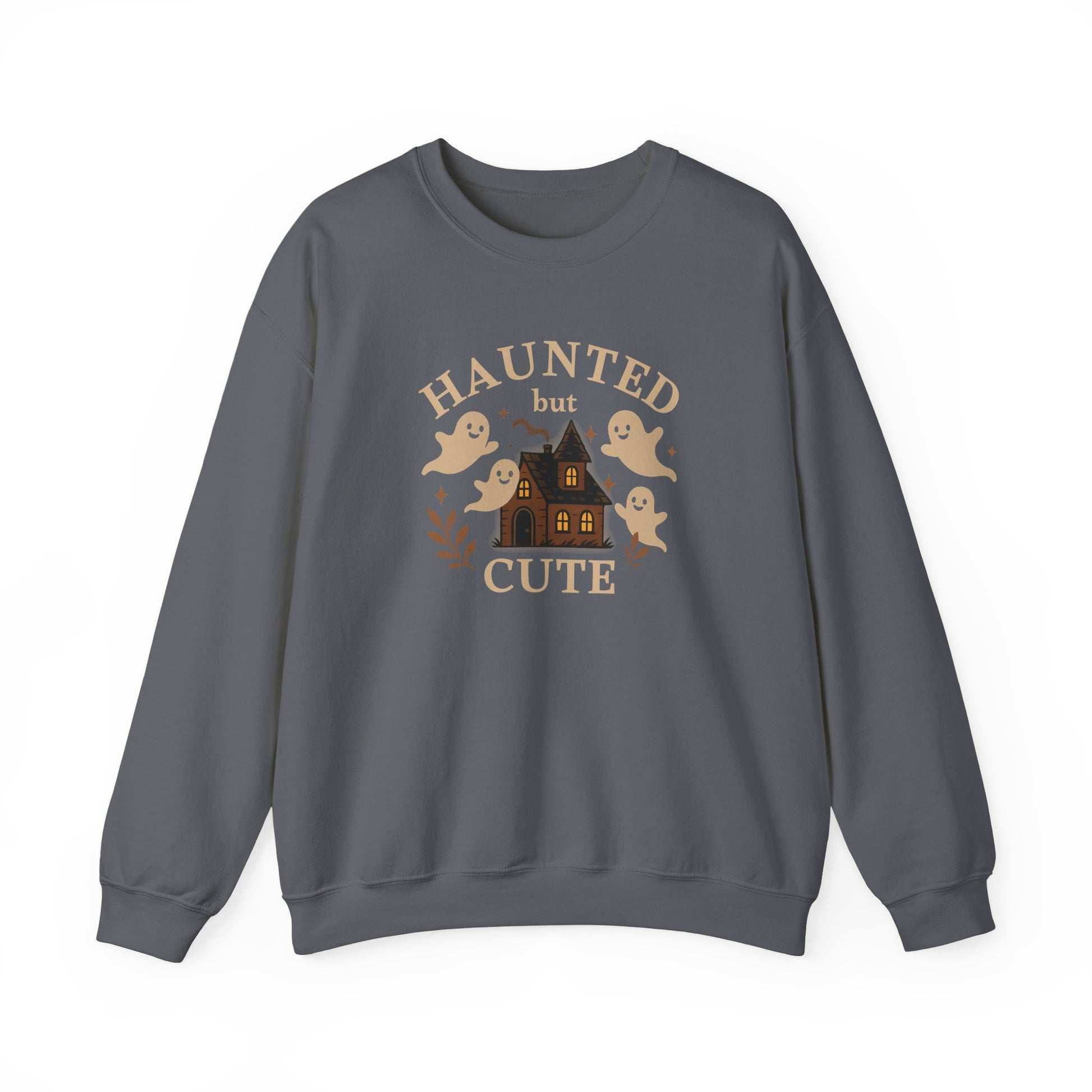 Haunted but Cute Unisex Crewneck Sweatshirt, Funny Halloween Sweater, Ghost Sweater, Gift for Friends, Ghost Shirt, Halloween Shirt