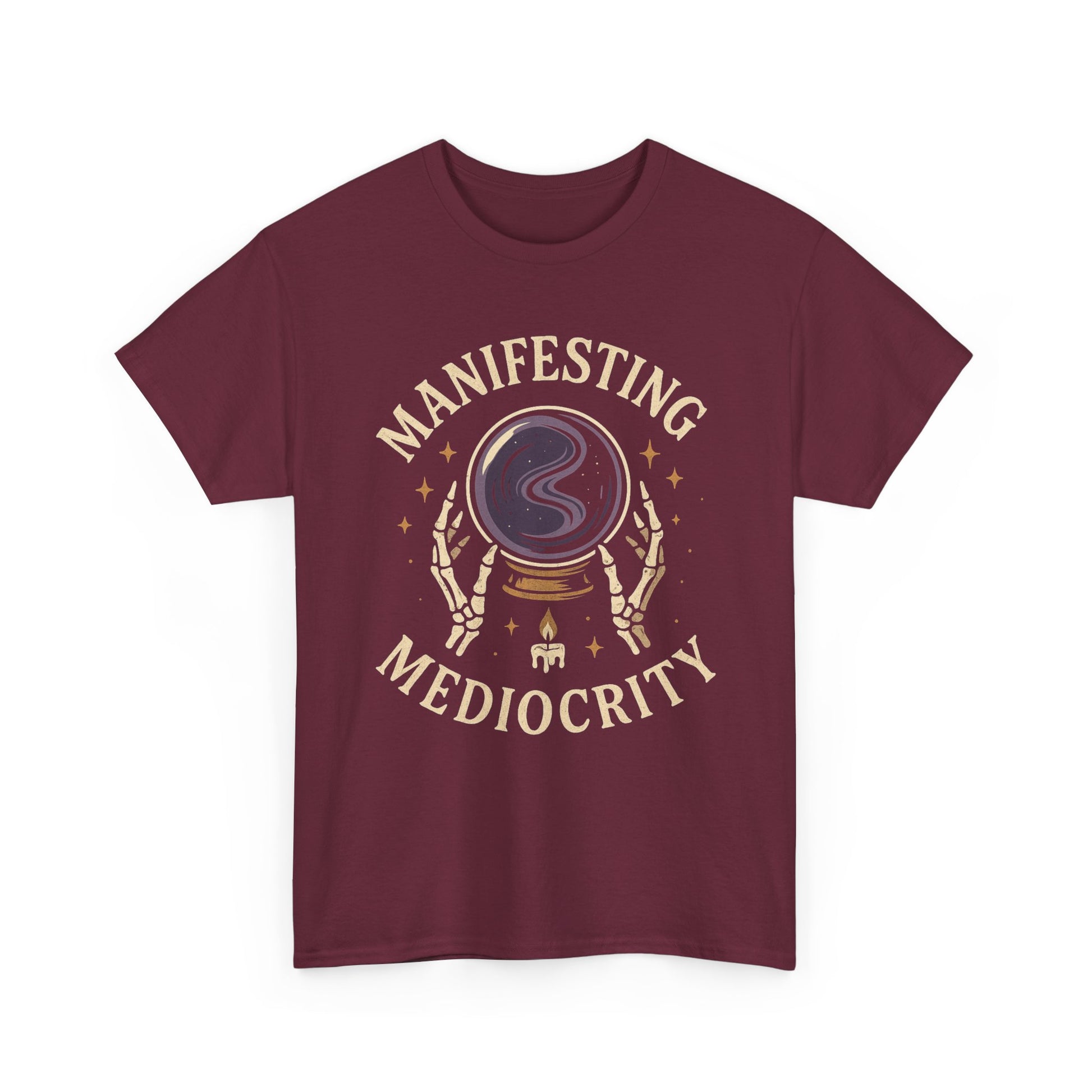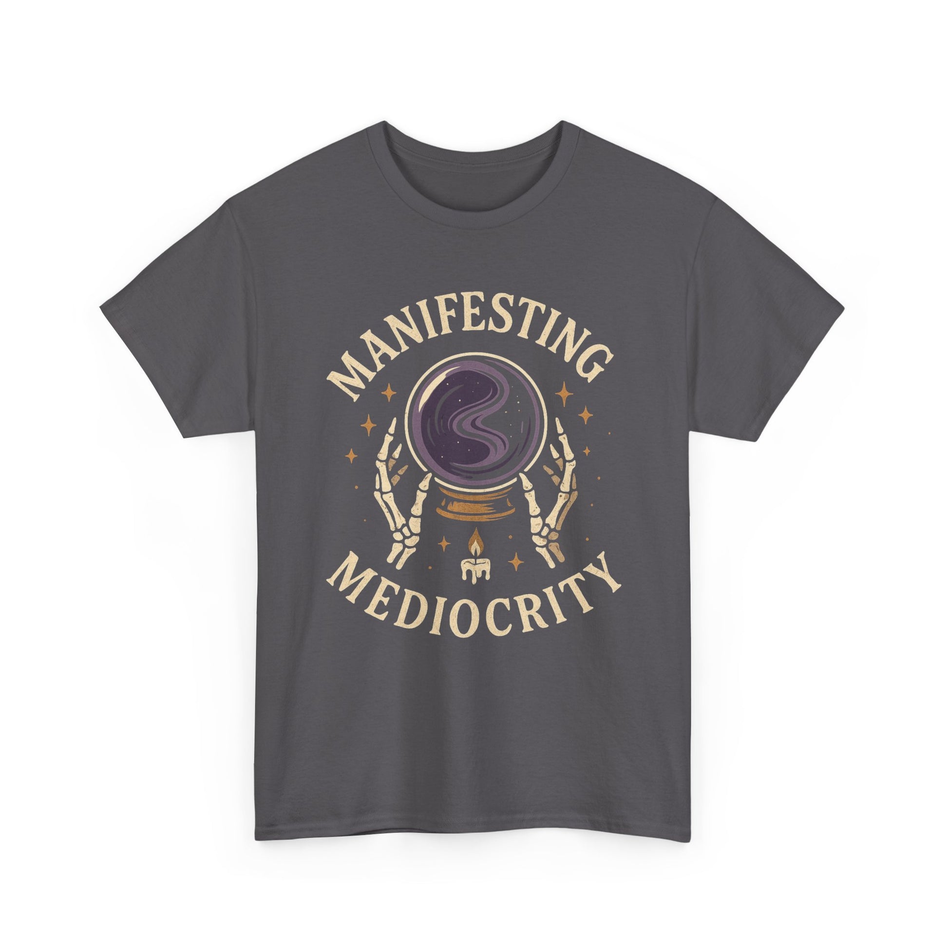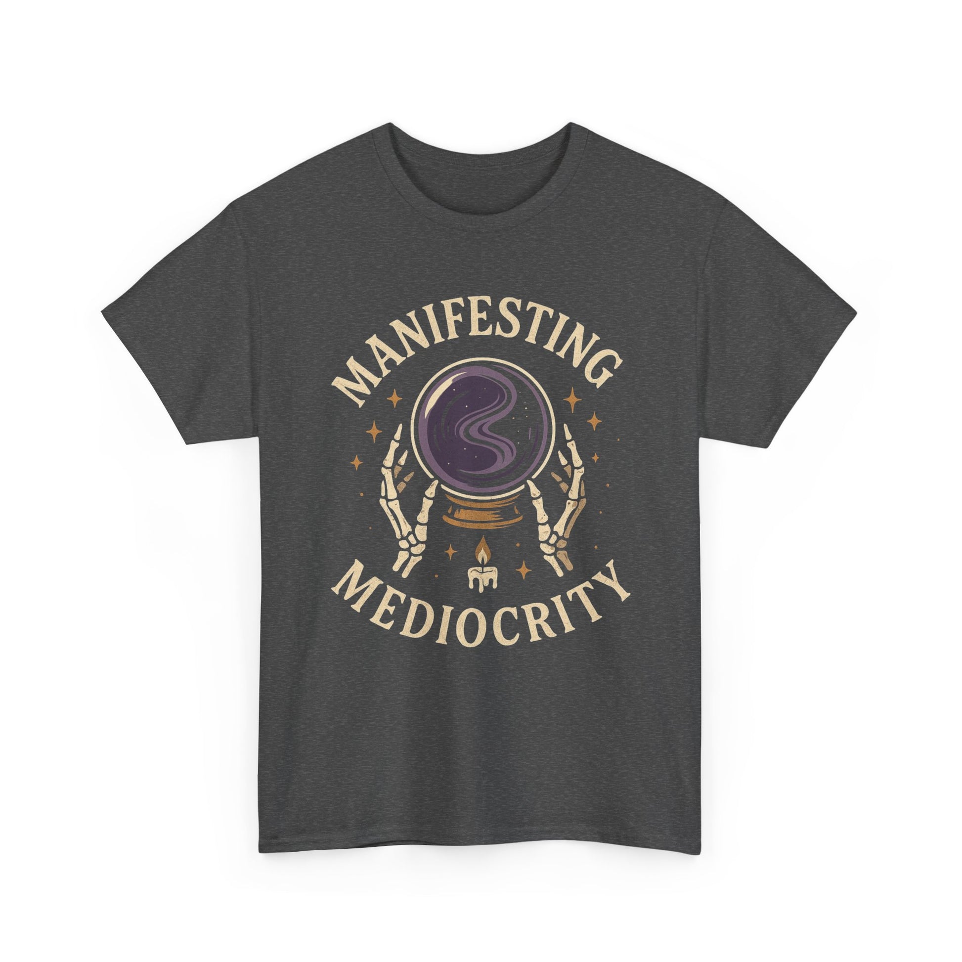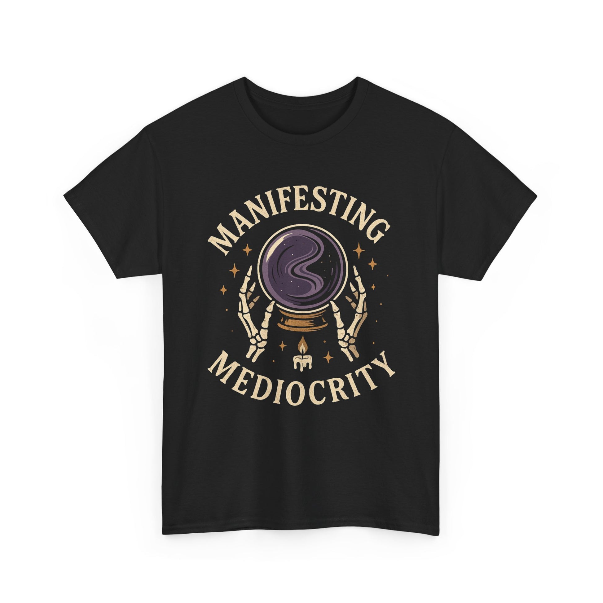 Manifesting Mediocrity Unisex Heavy Cotton Tee, Funny Halloween Tshirt, Astrology Tee, Gift for Friends, Witch Shirt, Skeleton Shirt
